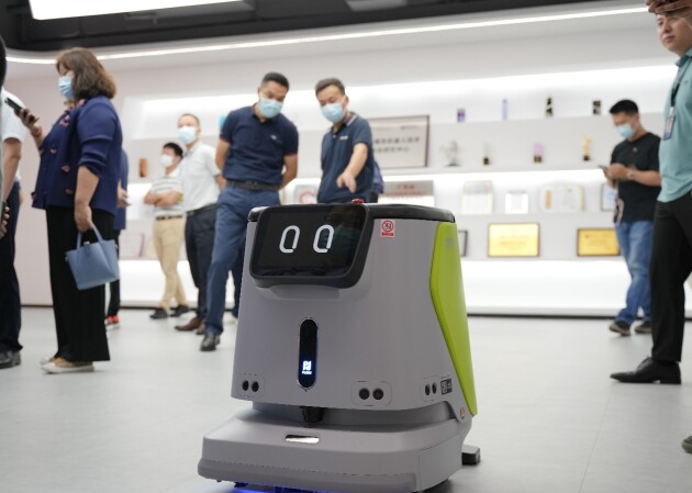 当天下午,深物协与各企业代表一起来到了普渡工厂,对机器人的生产过程以及机器人技术进行更深入的了解。踏进工厂,大家看到了各款机器人在大显身手:配送迎宾机器人“葫芦”为来访嘉宾派送饮用水,高端送餐机器人“贝拉”在产线与仓库间有序进行物料配送,CC1和SH1则分别在工厂和食堂内高效进行地面清洁。工厂里标准、精细的生产流程和机器人卓越的运行表现,获得了大家的一致赞赏。