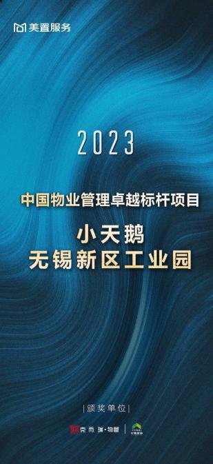 同步获得2023中国产业园区物业服务领先企业、旗下小天鹅无锡新区工业园获 2023中国物业管理卓越标杆项目等重要奖项。