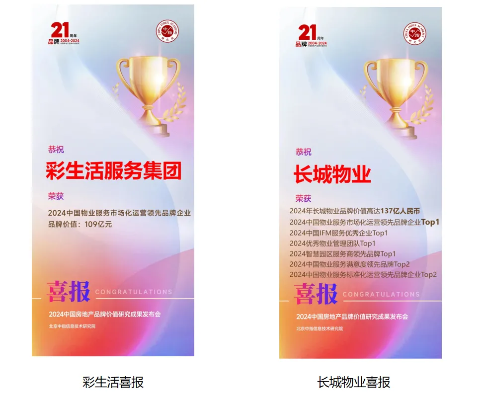 长城物业集团股份有限公司凭借业内领先的综合实力,全业态服务及品牌效应,荣获“2024中国物业服务市场化运营领先品牌企业”,“2024中国IFM服务优秀企业”,“2024优秀物业管理团队”,“2024智慧园区服务商领先品牌”,“2024中国物业服务满意度领先品牌”,“2024中国物业服务标准化运营领先品牌企业"。