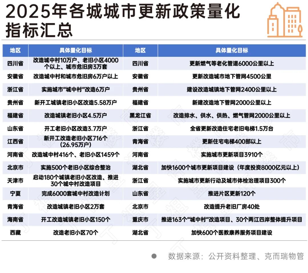 从各省市到2025年的具体更新指标可以看到多个机遇: