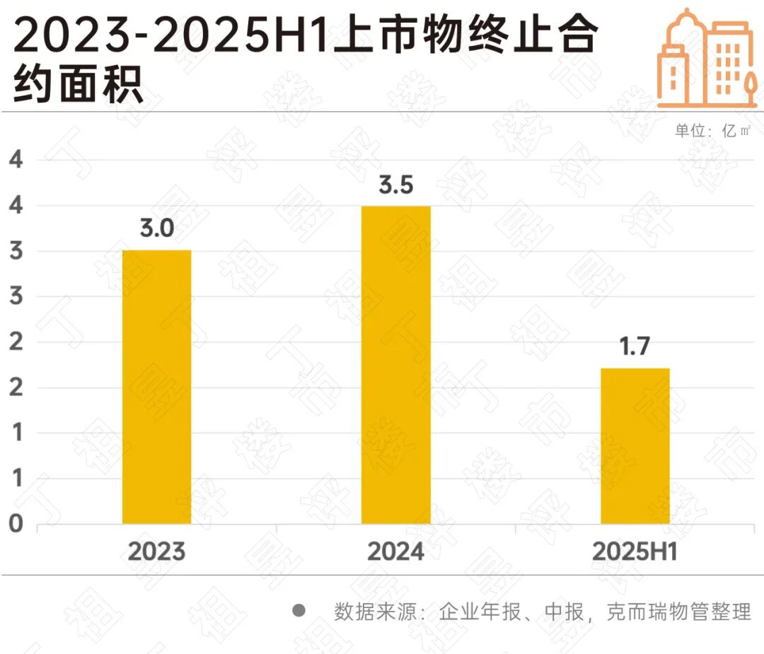 2023–2025H1期间,35家上市物企累计终止合约面积达8.2亿平方米,退盘超千万的企业占比达40%,