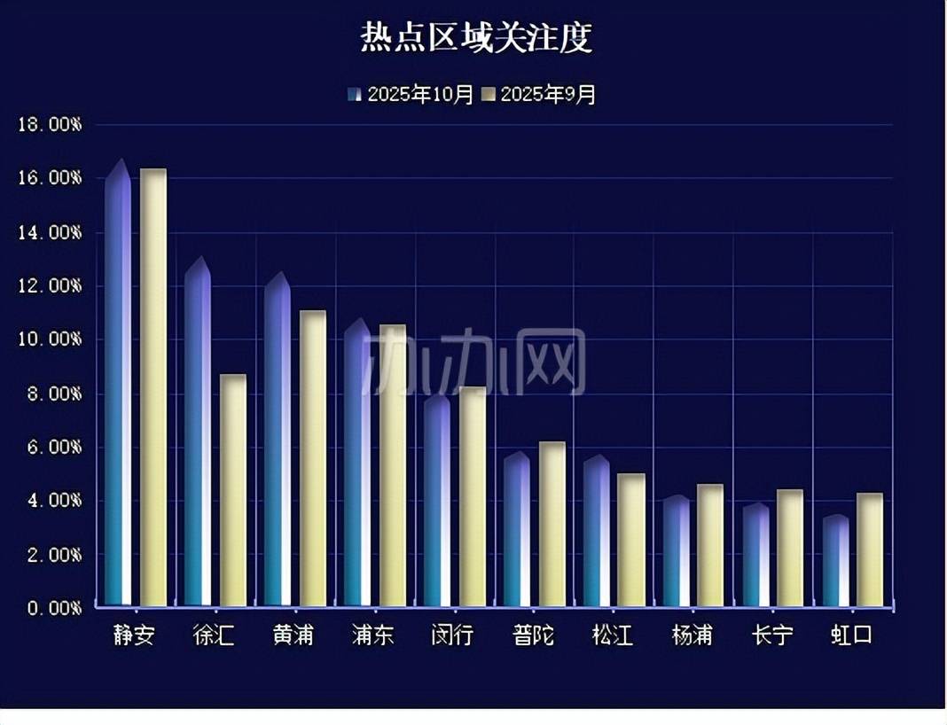 2025年10月,上海全市总热力数据环比微增,整体区域活跃度有所回升。