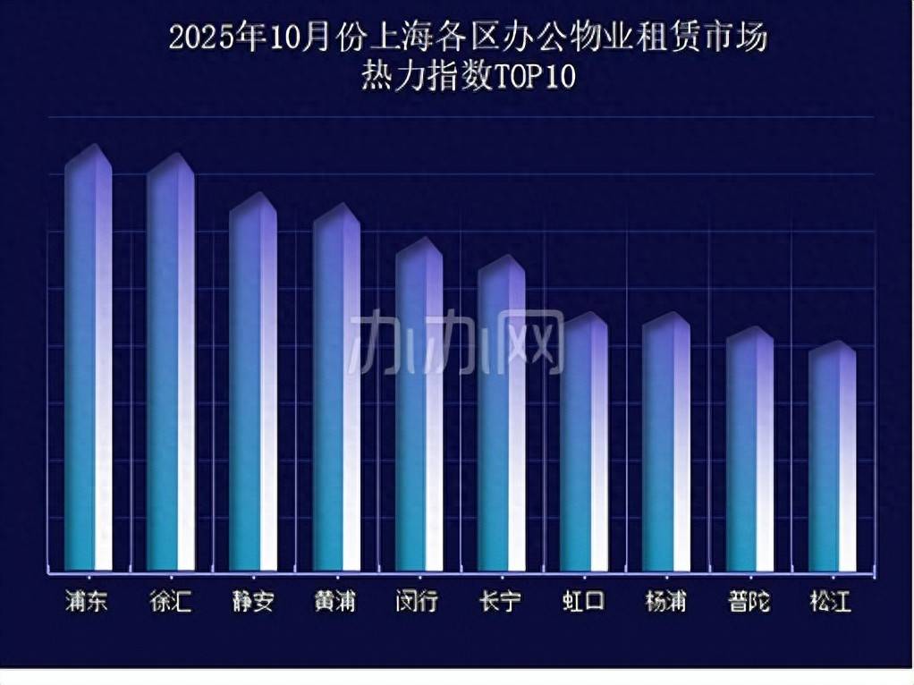 2025年10月份上海各区办公物业租赁市场热力指数TOP10