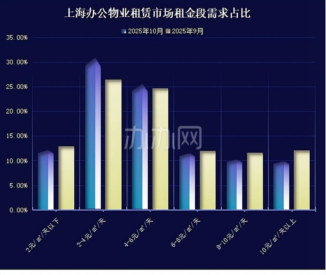 本月2元/㎡·天以下的租金需求微降至12.12%,满足了初创企业以及对办公成本极度敏感群体的需求。