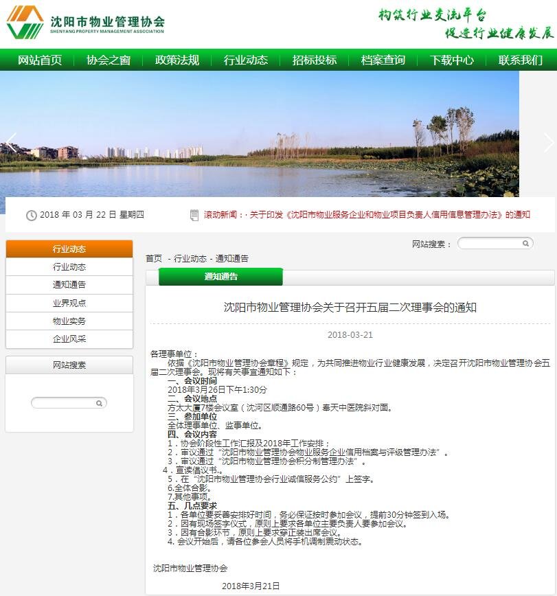 沈阳市物业管理协会五届二次理事会3月26日召开