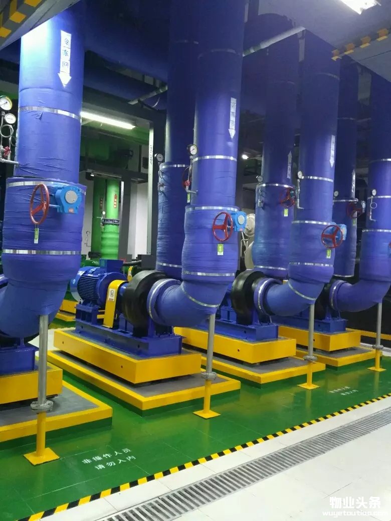 冷冻机房内,设备基础管理扎实、6S标准化完善。物业通过对空调系统蓄冷结构、运行监测、政府鼓励政策、节能降耗措施、计量色环识别管理、智能楼宇等智慧运营手段,保证空调系统安全、节能、舒适地运行。