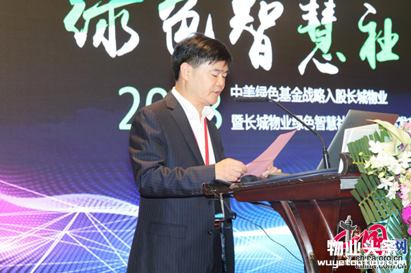 6月8日,长城物业绿色智慧社区行动方案在京发布,图为长城物业集团董事长兼总裁陈耀忠演讲。